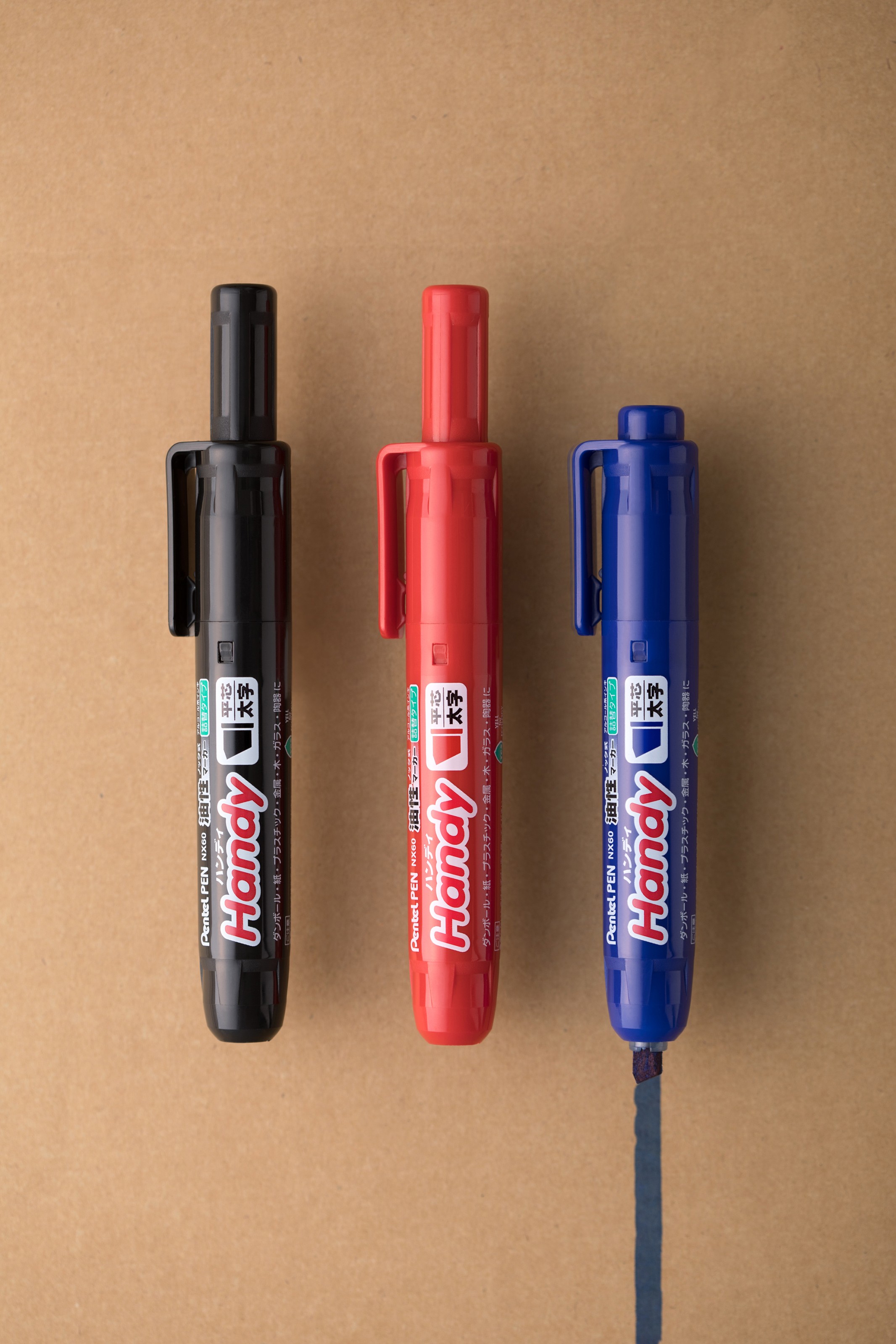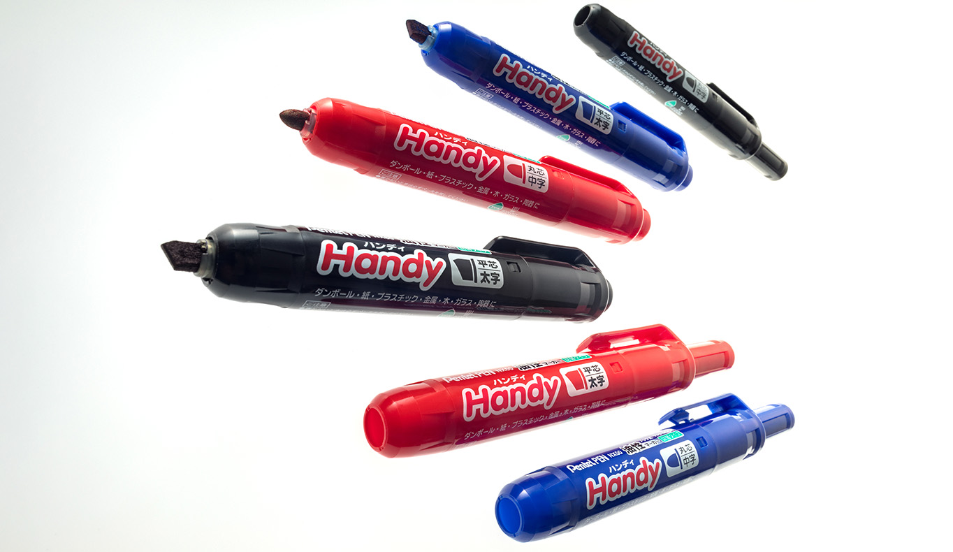 ハンディ マーカー ホーム 企業情報 ぺんてるデザイン ハンディ 01Overviewデザイン概要 ノック式の油性マーカー 。片手でペン先の出し入れができるので、屋外・倉庫・荷物搬送など、作業時の使用に最適である。インキの詰め替えが可能で経済性と環境に配慮した。 02Information基本情報 発売年 2004 デザイナー 柴田 智明(ぺんてるデザイン室) ※生産・販売終了商品 受賞 GOOD DESIGN 受賞年 2004 グッドデザイン賞公式サイトへ 04Next エフ水彩 ポリチューブ入り PENTEL DESIGNトップへ