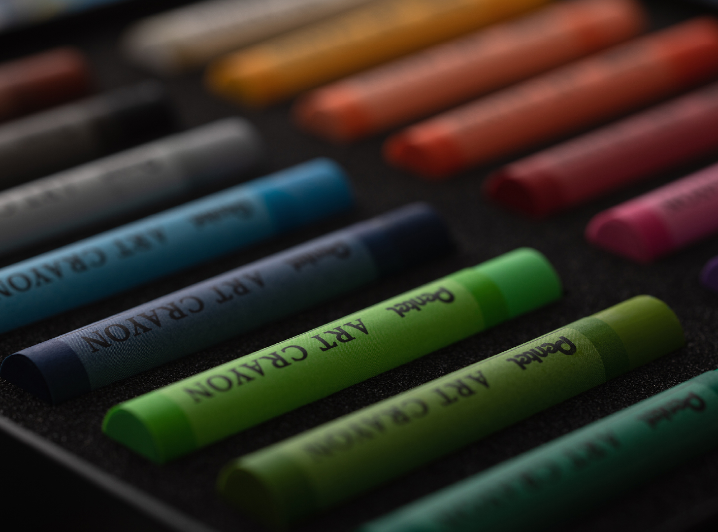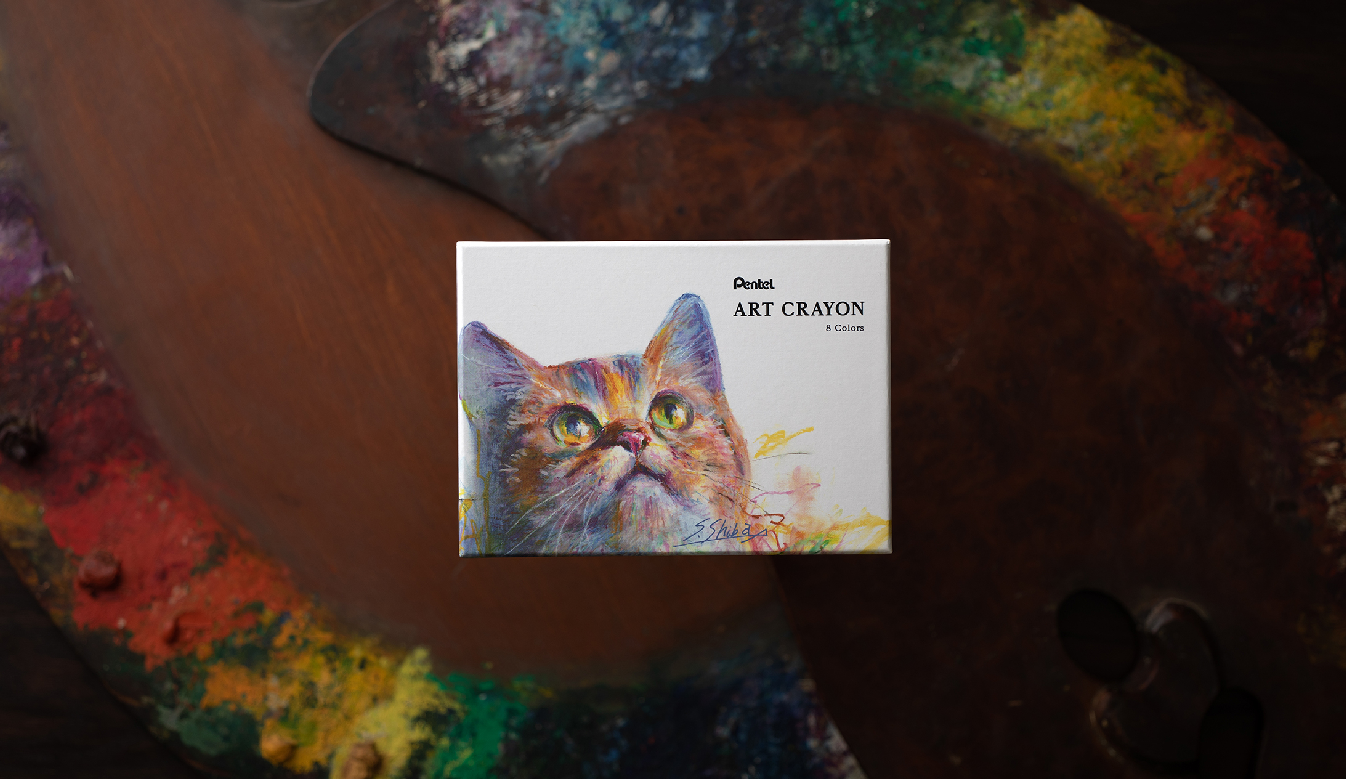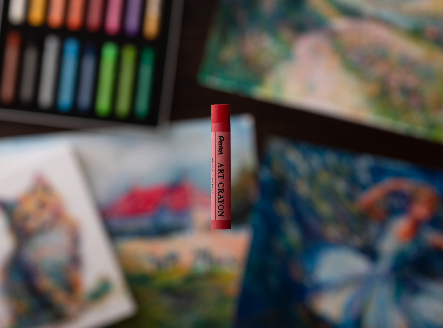 油絵のような表現ができる大人のためのクレヨン。暗い色の上にも明るい色を塗り重ねられること、えのぐのようになめらかな質感で混色しやすいことによって、クレヨンで描いたとは思えない重厚感と奥行きのある表現を実現。子どもの頃からなじみのあるクレヨンという画材をきっかけに、大人がもう一度描く楽しさを感じることができる。