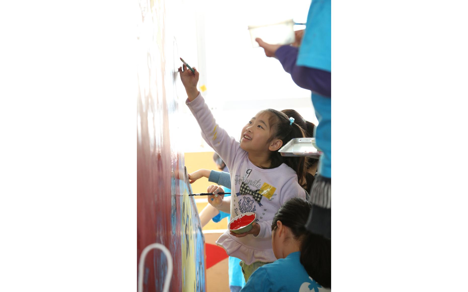 加藤様筆を使わずに手で描いている子どもがいました。校舎に触れたその感触をいつまでも忘れないでいてほしいと思いました。