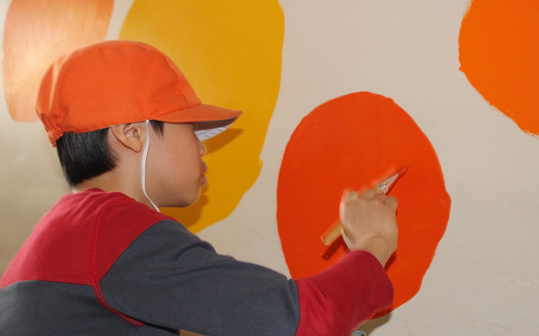河本先生画材を豊富に用意してくださったことで、子どもたちの発想がより生き生きとしたものとなりました。「ぼくは、壁にたくさん水色を塗りたい。」「私は、クレヨンで星形を縁取りしてはみ出さないようにしたい。」などの子どもの思いを支えるサポートがあったため、思い切った活動を展開することができました。その結果として、今回のような多様で瑞々しい表現につながりました。 また、全校を代表した数名の子どもカメラマンは、「みんなの思いを次の世代に残す」といった大きな責任とともに、中には不安を感じている子もいました。しかし、事前にプロのカメラマンから手ほどきを受けたことにより、自信をもち、やりがいと楽しさを感じながら撮影に臨むことができました。