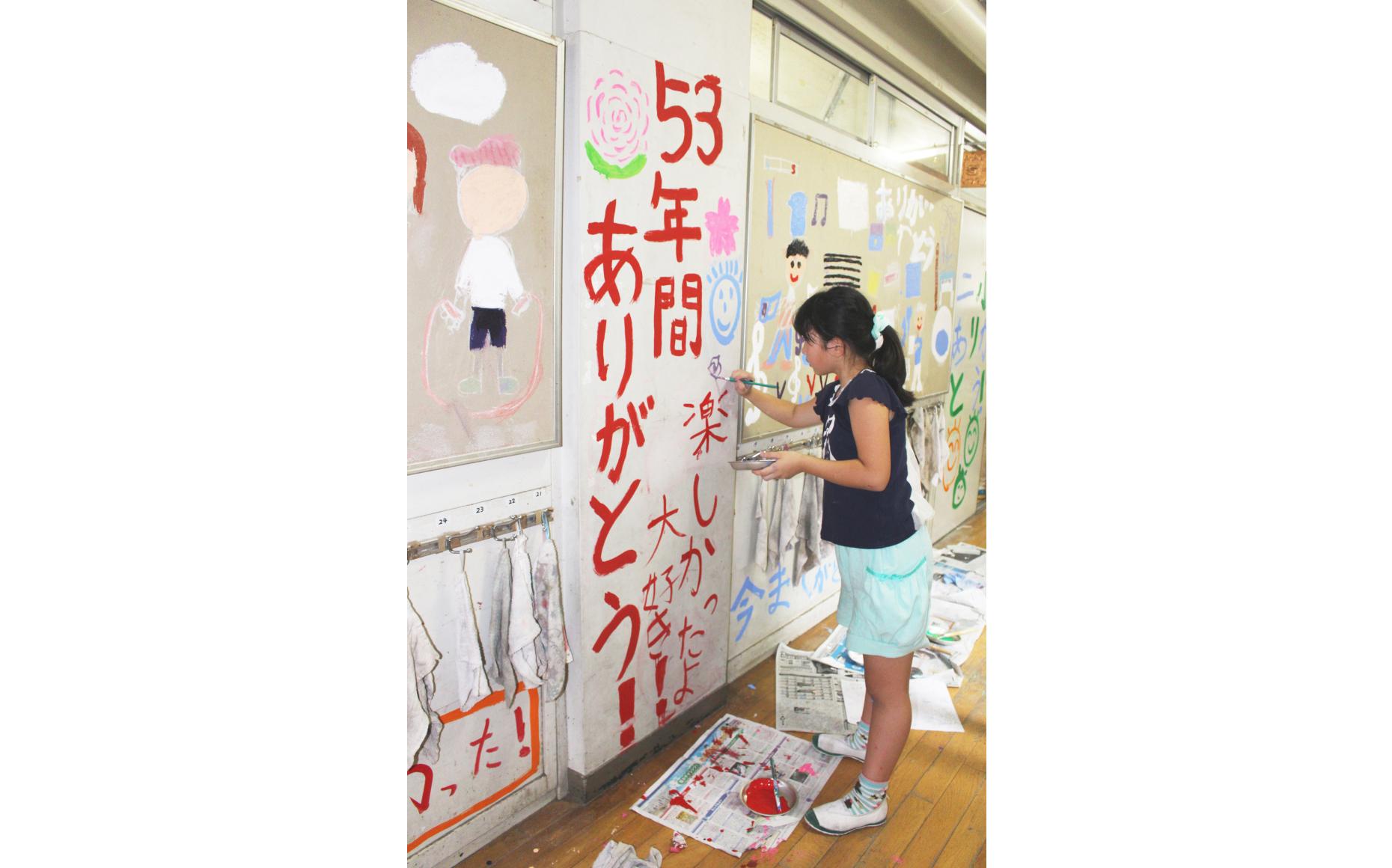 佐島校長先生現在、新校舎での生活を始めていますが、前の校舎に感謝のメッセージを残し、きちんとお別れをしたことが児童の心の安定につながっているということを実感しています。 校舎に記した絵やメッセージは、校舎が取り壊されれば消えていくものですが、懐かしい友だちと過ごした日々の出来事や、校舎取り壊しの時にメッセージを残したことはずっとその子の心に残っていくことと思います。 改めて子どもの心の育ちにとってもいい取り組みであったと思うので、全国にこの取り組みが広がっていくことを期待しています。