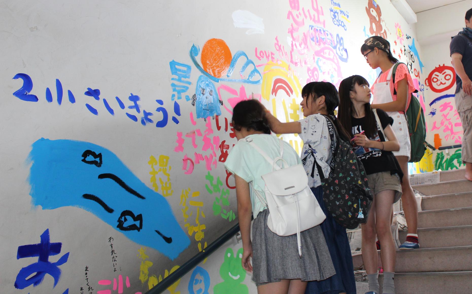 学校の壁という本来描いてはいけない場所に、初めて子どもたちが描いていくときはどのような反応でしたか?
