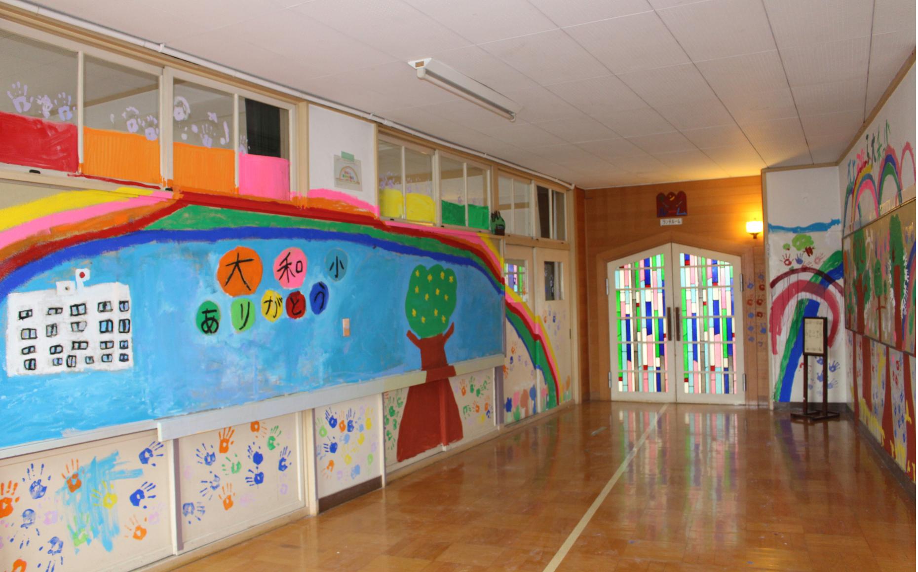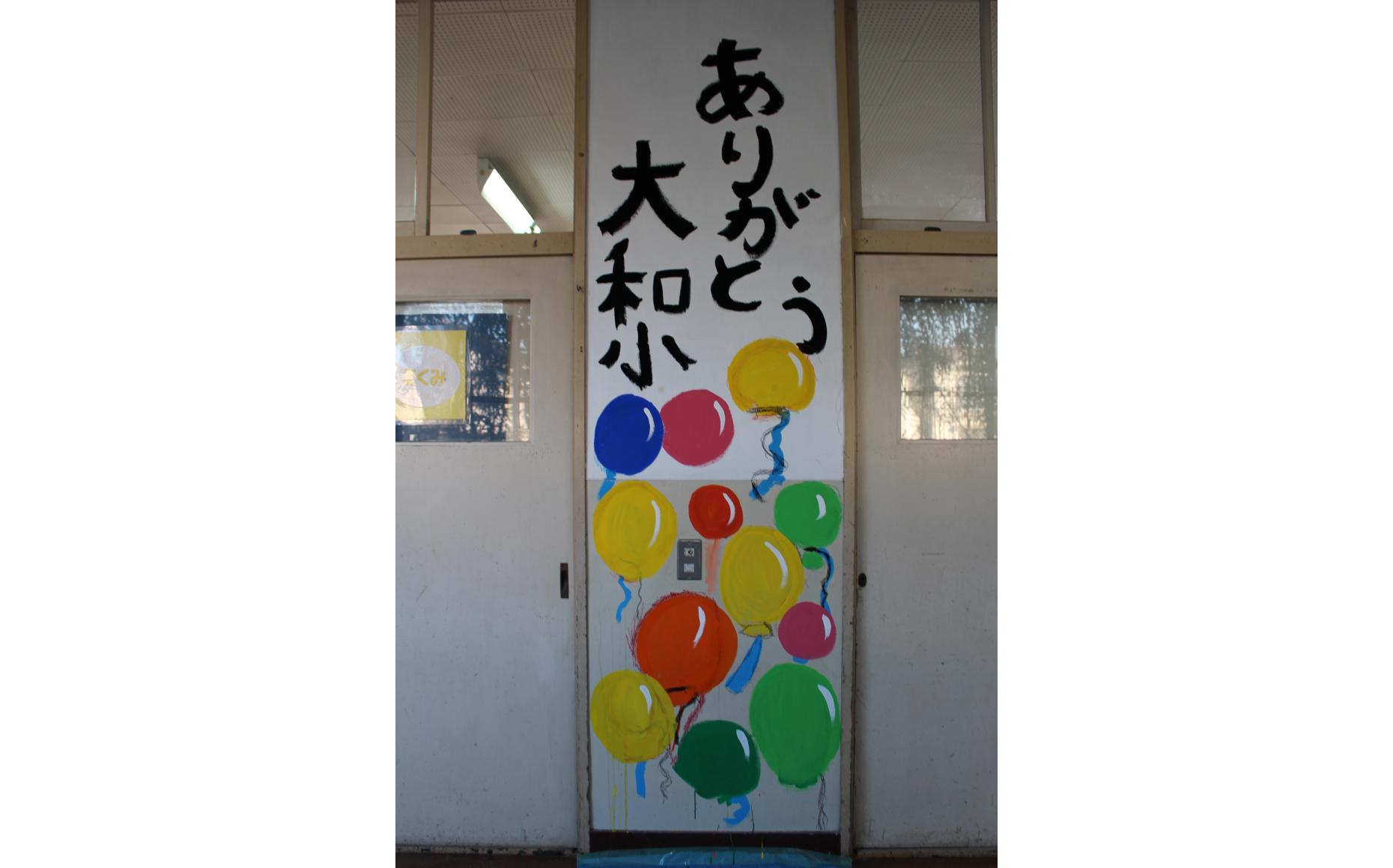 2017年3月、中野区の学校再編事業により閉校となり、大和小は76年の歴史に幕を閉じました。この76年間で約8,500名を超える子どもたちが、大和小で学んできました。シンボルツリーである菩提樹をはじめとした校舎との思い出を描き「ありがとう大和小カラフルペイント大作戦!」を行いました。壁画には子どもたちの大和小への強い思い(大和魂)が込められています。