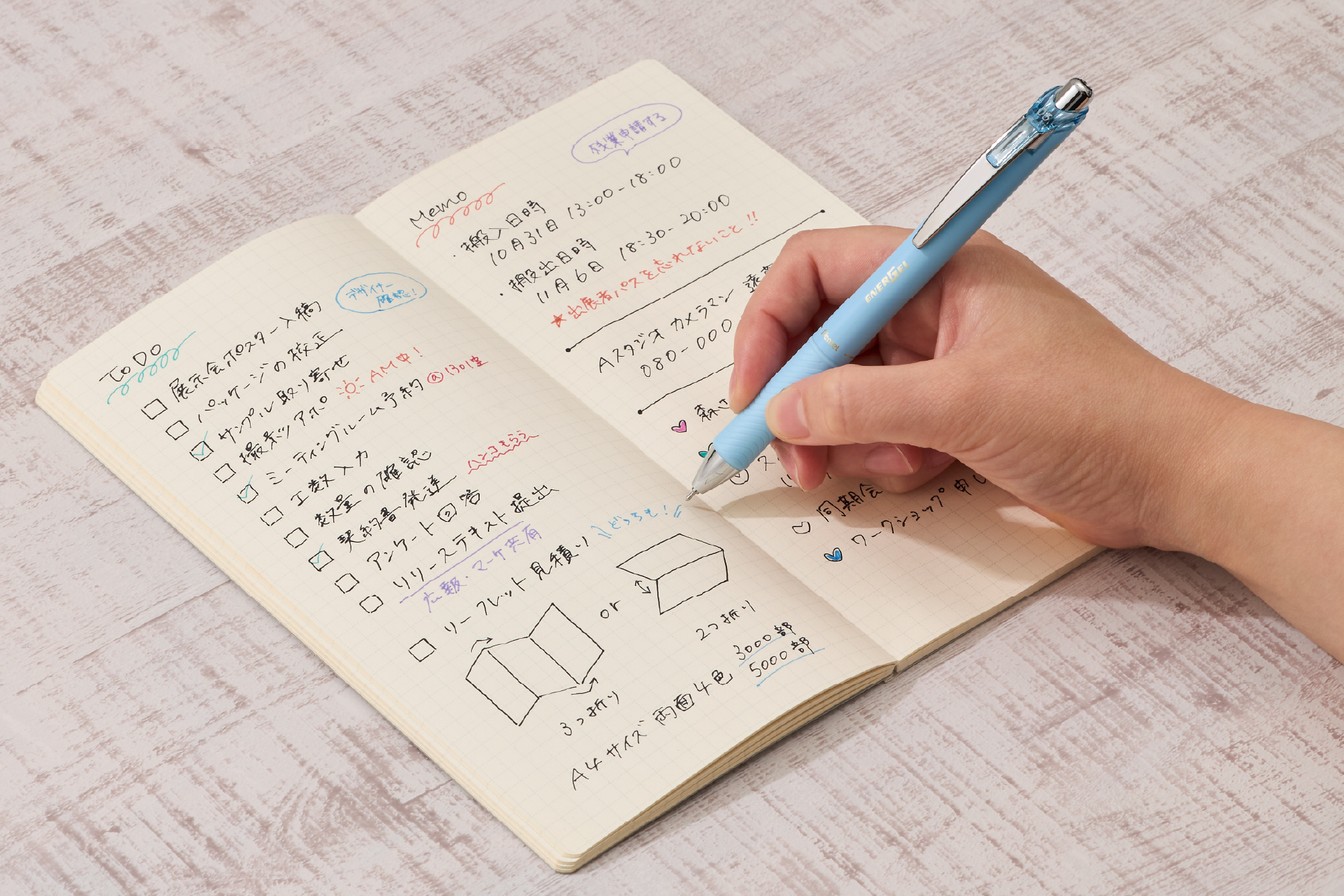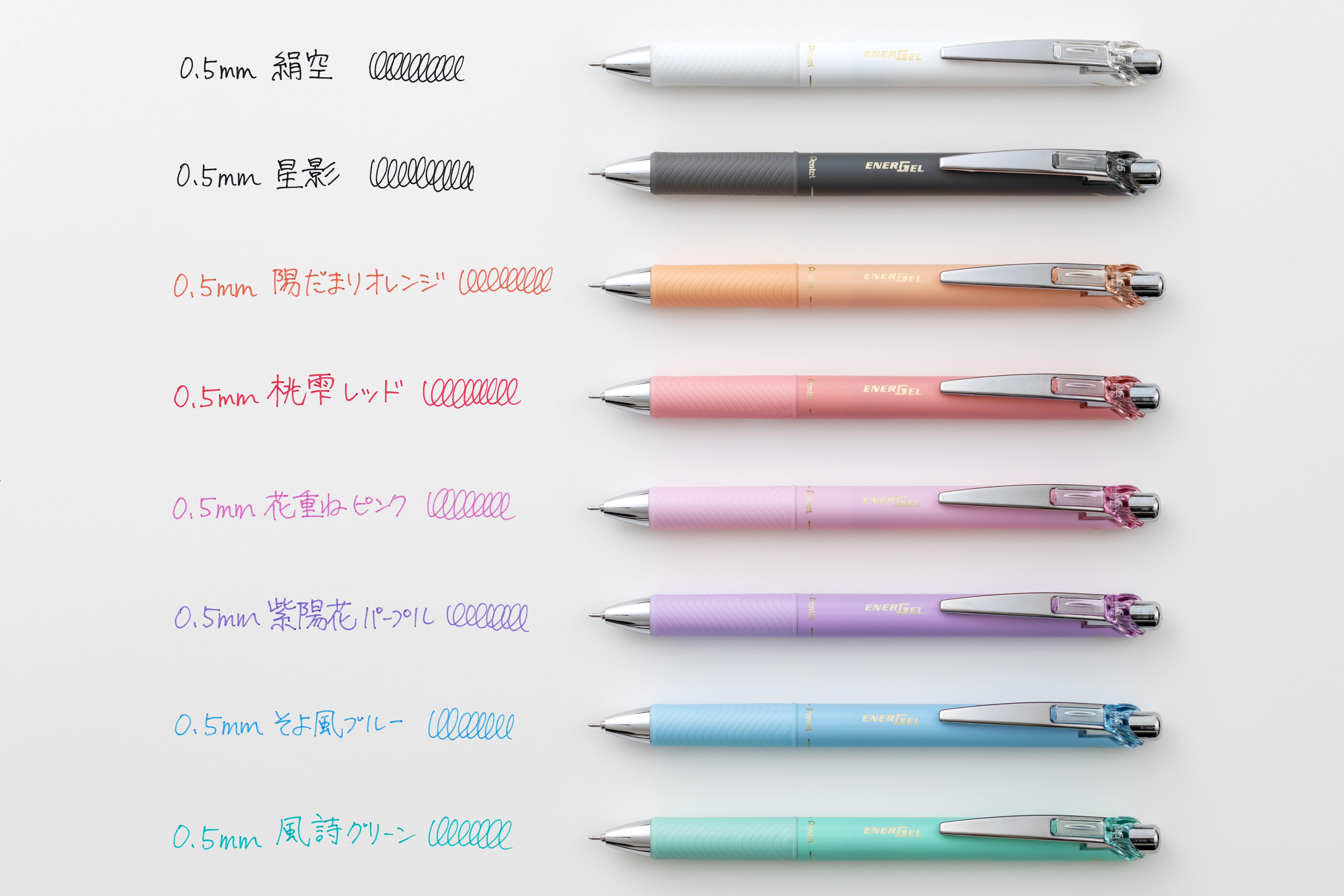 1. 王道の黒と組み合わせても映える、エナージェル初のソフトカラーインキ
