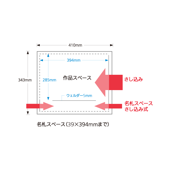 作品を横から差し込むだけ。ホルダーはミシン目でつながっているので、展示スペースに合わせて切り離して使えます。