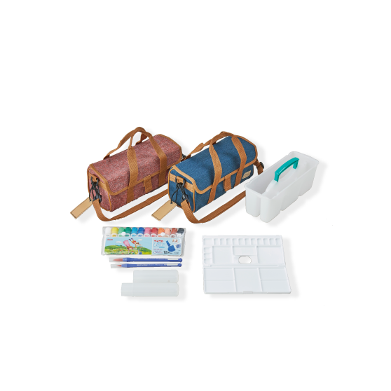 ●セット内容:バッグ、エフ水彩12色(ポリチューブ入り)、画筆(ネオセーブル6号・14号)、パレット、筆洗バケツ、筆ケース