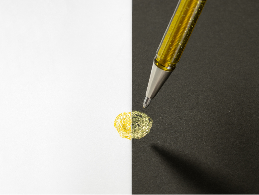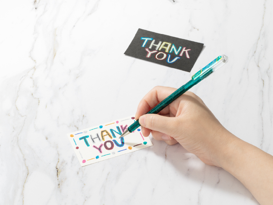 白い紙では鮮やかに、黒などの濃く深い色の紙ではグリッターの輝きがきわだち幻想的に、1本で多彩な表現をお楽しみいただけます。