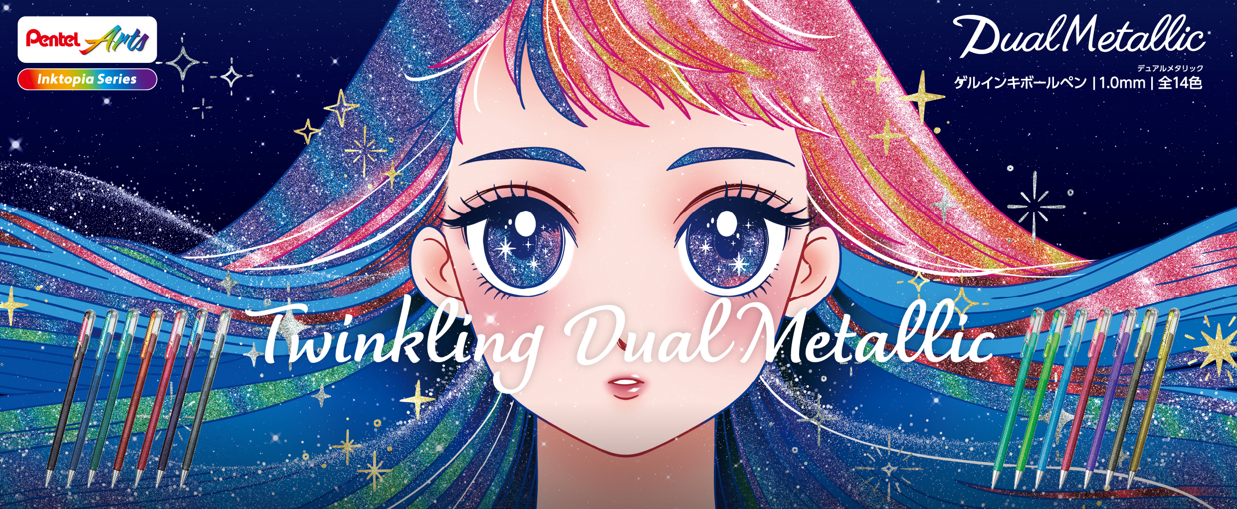 インクトピアシリーズ(Inktopia Series)とは、「Ink(インク)」と「Utopia(理想郷)」を組み合わせたシリーズ名で、「デュアルメタリック」「ミルキー」「マットホップ」の3種類から成る、ぺんてるのカラフルで個性的なインキシリーズです。