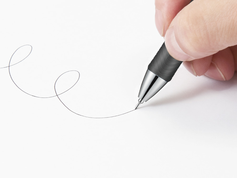 インキの特長を最大限生かすため、スムーズなボールの回転と安定したインキ供給が可能な設計になっています。書き始めから書き終わりまで安定した書き心地を実現しました。
