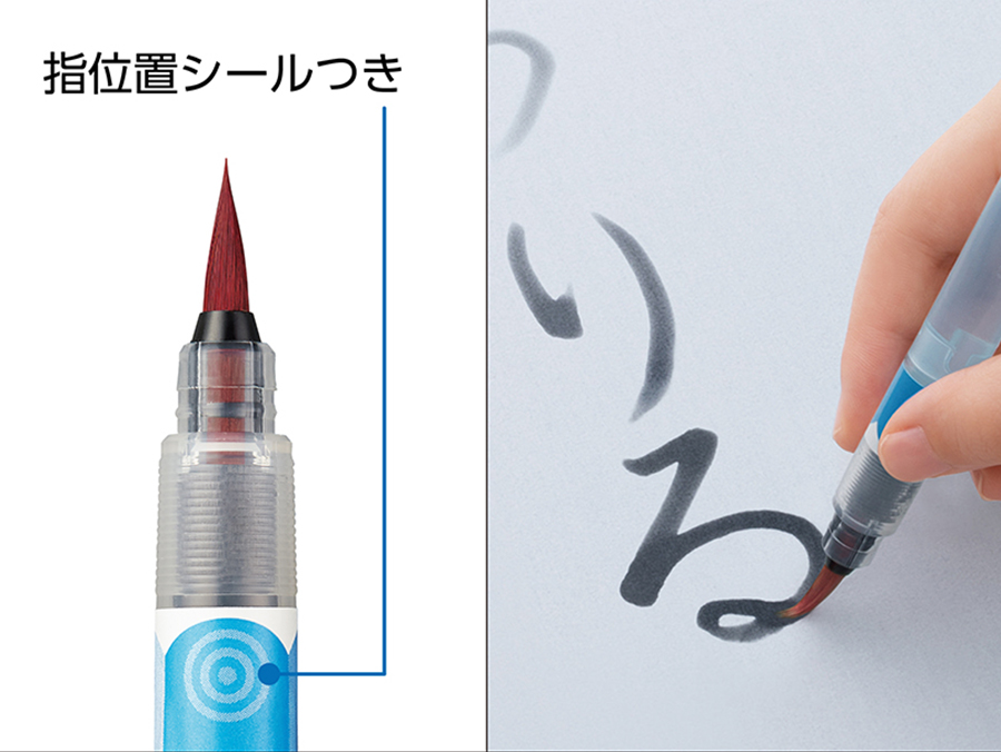 小学校低学年が使うことを意識し、通常より短い穂先にしています。色つきの穂先なので、水書シートの上で見やすく筆記できます。