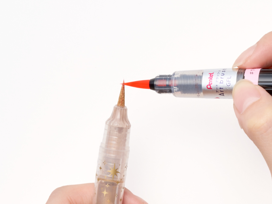 アートブラッシュの穂先を合わせて混色することで、グリッターとカラーのグラデーションを作ることができます。