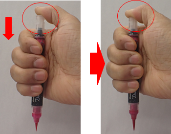 ※穂先へのインキの浸透が不十分な場合は、追加で3回程度プッシュし、1分ほど様子を見ることを繰り返してください。